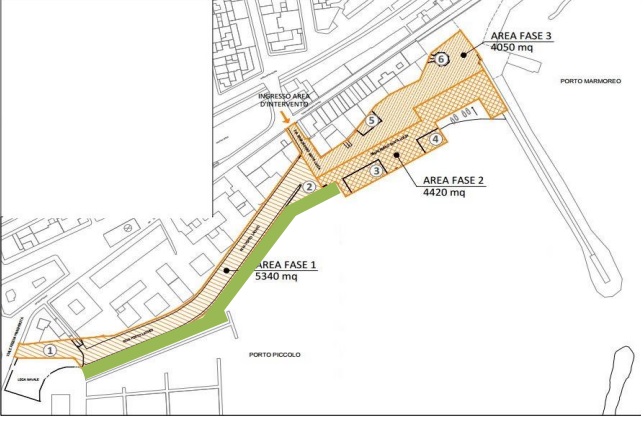 I tempi sono serrati: lo Sbarcadero Santa Lucia dovrà essere riqualificato entro il 20 ottobre del 2025. Individuate tre distinte fasi di intervento, ognuna impegnerà mezzi e operai per quattro mesi. La prima riguarda l’area che dall’ingresso del porto piccolo si allunga a destra verso la Lega Navale. La fase due interessa invece il tratto opposto, verso la diga foranea. Ultima area da riqualificare, quella oggi asfaltata tra le attività esistenti (ristoranti e hotel) e gli approdi.