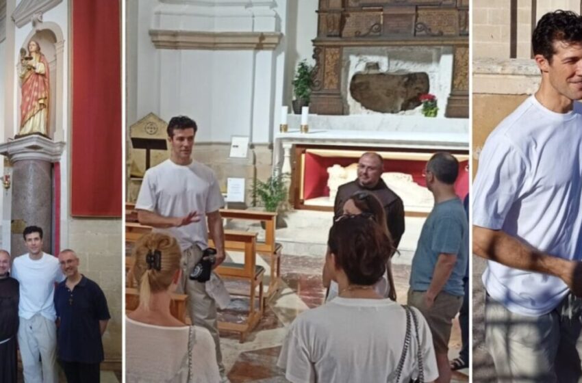 Un turista d’eccezione a Siracusa: Roberto Bolle. Il danzatore che incanta il mondo ha trascorso qualche ora in città dopo il suo straordinario gala al tetro greco di Siracusa. Anzi, proprio al termine dello spettacolo si è ritagliato qualche ora per passeggiare in Ortigia. Un video sul suo instagram lo segue mentre attraversa piazza Duomo, con tanto di piroetta attorniato dal barocco siracusano. Il giorno dopo, visita anche in Borgata ed in particolare al Santuario di Santa Lucia extramoenia. “Ospite inaspettato, Roberto Bolle ad ammirare il Caravaggio e a pregare Santa Lucia”, si legge sui canali social della basilica. “E’ stato un grande piacere conoscerti. Sei davvero una persona speciale”, aggiunge fra Daniele. Bolle si è fermato in particolare davanti alla cosiddetta colonna del martirio ed ha poi visitato anche il sepolcro.