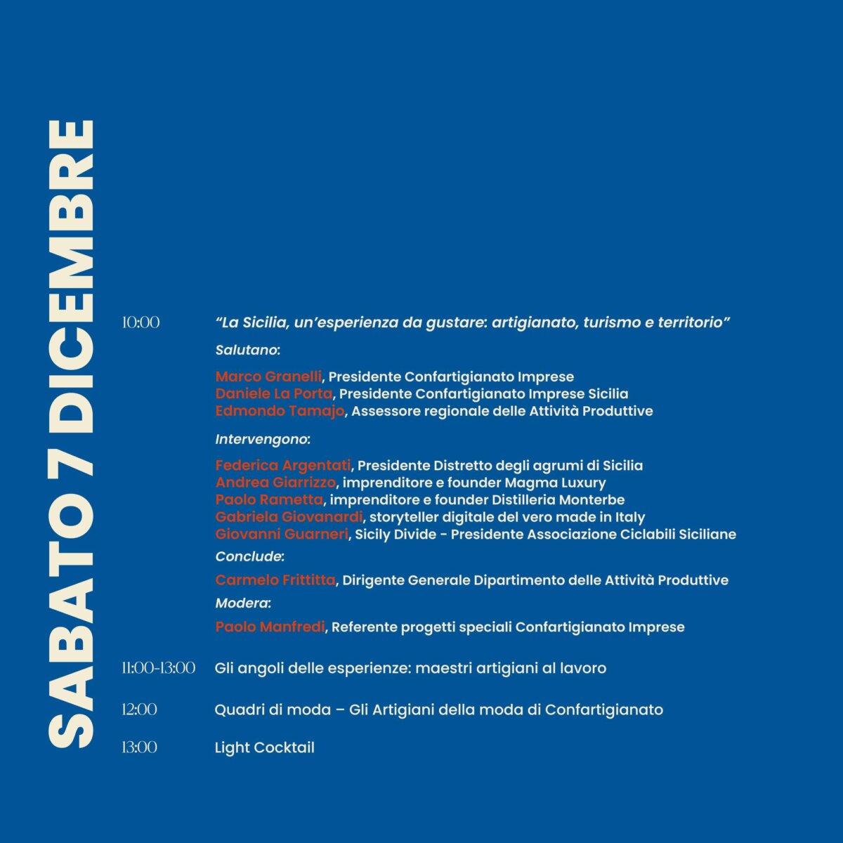 Attesa per il convegno “La Sicilia, un’esperienza da gustare: artigianato, turismo e territorio” di sabato 7 dicembre, con la presenza dell’assessore regionale delle Attività Produttive, Edy Tamajo e la partecipazione di Marco Granelli (presidente Confartigianato Imprese) e Daniele La Porta (presidente Confartigianato Imprese Sicilia).