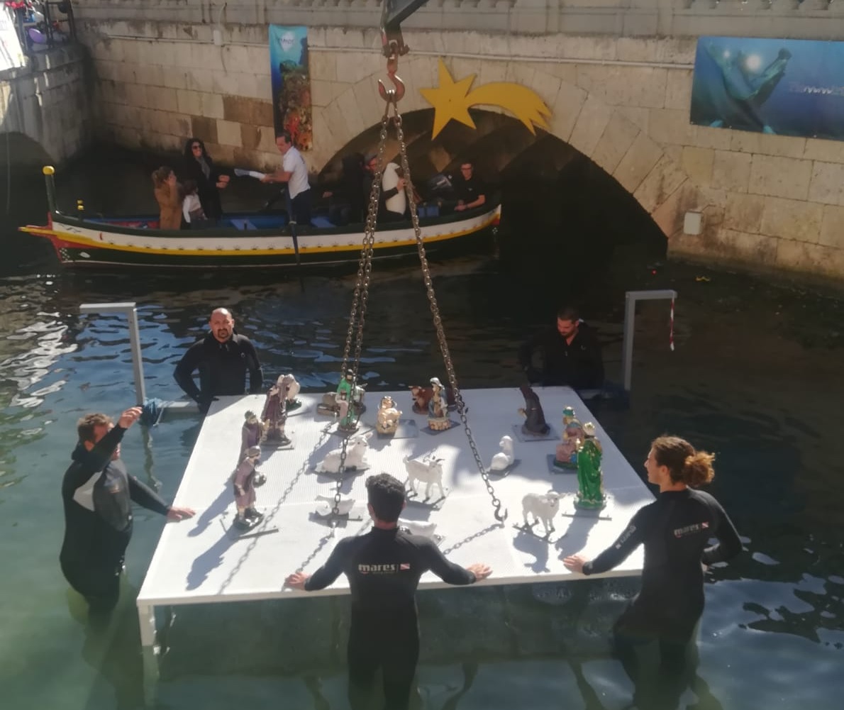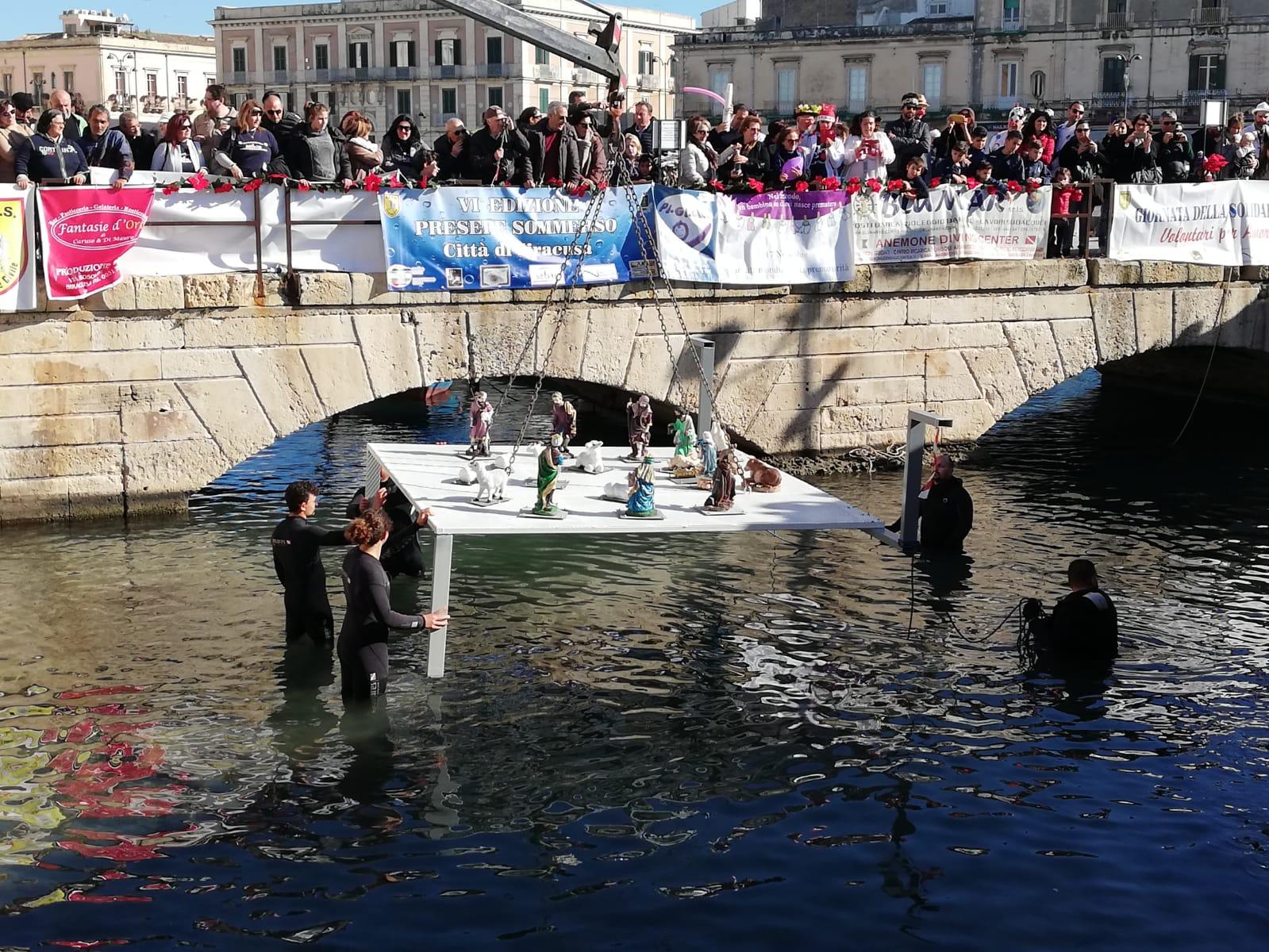 Per il settimo anno consecutivo, Ortigia ha il suo presepe subacqueo grazie ai Ross del presidente Carmelo Bianchini. Con la collaborazione del Plemmirio e ben 16 associazioni di volontariato, la scena della Natività è stata “calata” nello specchio d’acqua di Riva Forte Gallo, accanto al ponte Umbertino. Ventuno statuine in tutto, dipinte e decorate insieme ai ragazzi di DiversamenteUguali, Clown Terapia e Bluland Soccer.