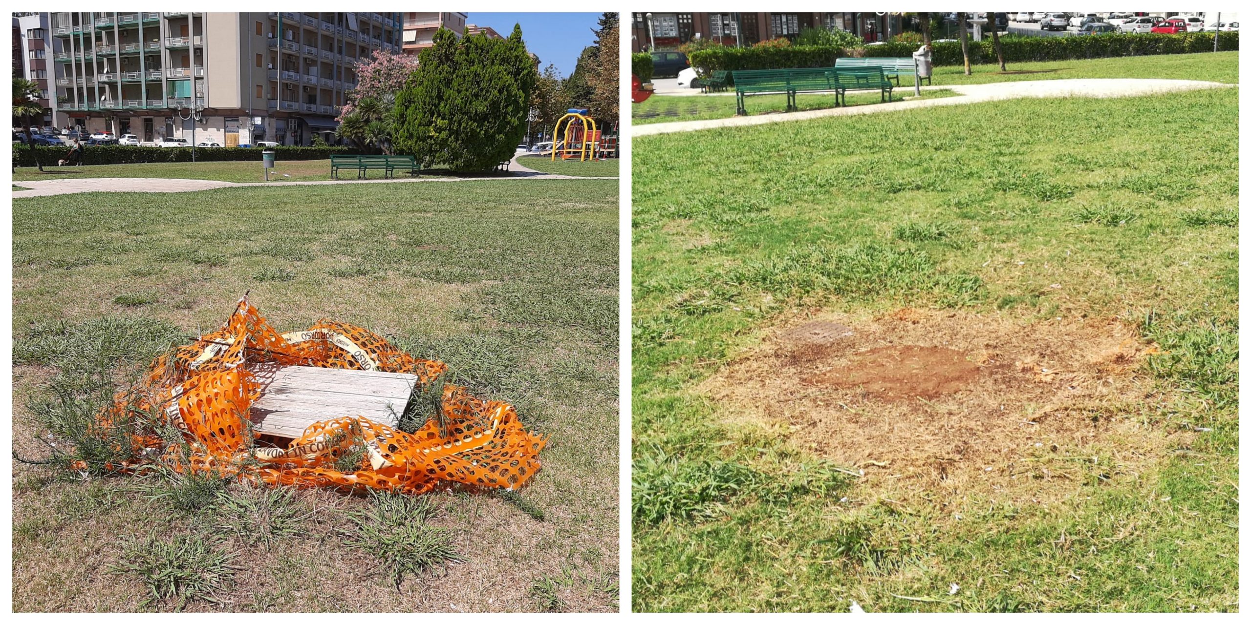 Le condizioni in cui versa il parco sono effettivamente drammatiche Oltre alle assi in legno saltati, ai tanti pezzi mancanti, a lungo si è corso un rischio serio, con un tombino scoperto su cui era stato posto un bancale in legno ed una recinzione di plastica tutt’altro che sicura. Una storia di assurda burocrazia per la quale, non essendo più disponibile la tipologia di coperchio originariamente utilizzata, tutto restava fermo. Questo problema è stato risolto ieri, attraverso il riempimento con del terriccio. “Costo zero e tempo impiegato non più di dieci minuti- osserva l’assessore- Predisposta, inoltre, la risemina del prato”.