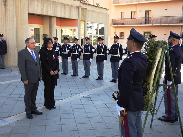 In precedenza questa mattina il questore Gabriella Ioppolo ed il prefetto Luigi Pizzi hanno deposto una corona di fiori dinanzi la stele in onore dei caduti della Polizia di Stato, che si trova presso l’ingresso della Questura, in viale Scala Greca.