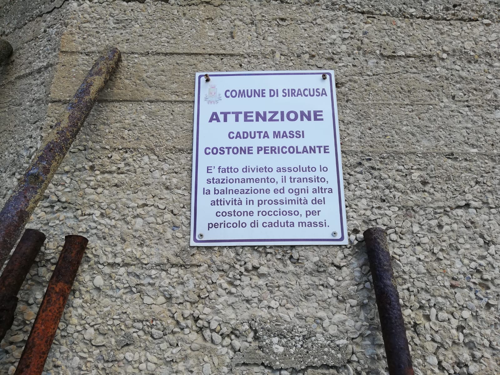 Siracusa. Costone pericolante all'Arenella: c'è chi abbatte le transenne per passare