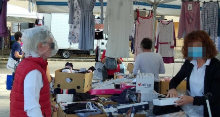 La Fiera del Mercoledì torna pienamente operativa. Da questa mattina, alla parte alimentare, tornano ad aggiungersi gli altri settori merceologici, con le nuove regole, dettate dalla necessità di mantenere distanziamenti e norme igieniche per evitare il propagarsi del Covid-19. A fine mattinata, il bilancio della prima giornata, un sorriso, tuttavia, qualche immagine lo strappa subito. Bene che ci si protegga, che si assumano tutte le misure necessarie per non contagiare e non farsi contagiare, ma una busta di cellophane a ricoprire l’intera testa è una scena che di certo non è passata inosservata. Giusto una nota di colore, che ci fa conoscere ancora delle sfaccettature della creatività di chi vuole tornare a svolgere le attività di prima ma- questo nello scatto di questa mattina è piuttosto evidente- ha anche paura di contrarre il virus. Trova, così, un compromesso. Una soluzione, sebbene abbastanza problematica e piuttosto rischiosa.