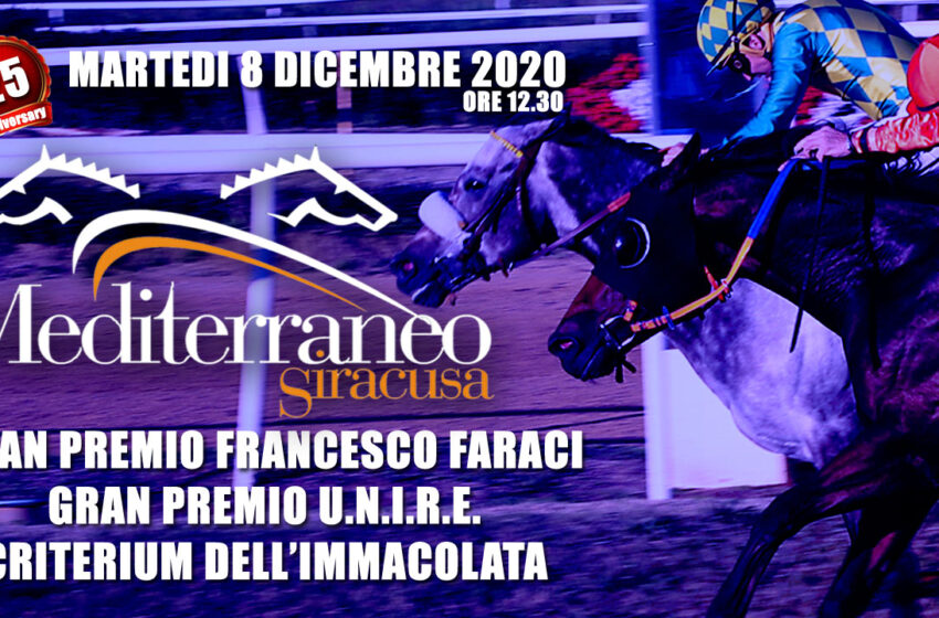 E’ di certo il convegno più atteso dell’anno. Le 7 competizioni al galoppo, in programma l’8 dicembre dalle ore 12:30, festeggiano il XXV Anniversario della nascita dell’ippica all’Ippodromo del Mediterraneo di Siracusa. Tre Handicap Principali, accompagnati da generosi montepremi, garantiscono la riuscita dello spettacolo che, con rammarico, si svolgerà a porte chiuse e con un pubblico solo collegato attraversi canali telematici.