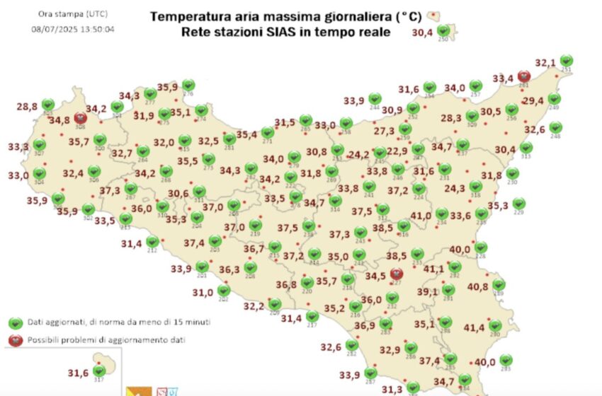 Il valore raggiunto a Siracusa dovrebbe segnare, al momento e in attesa di ulteriori aggiornamenti, il record per il 2025. Lo scorso giugno era stata la stazione SIAS di Lentini, in contrada Luppinaro a quota 50 metri sul livello del mare, a superare la soglia dei 40 °C.