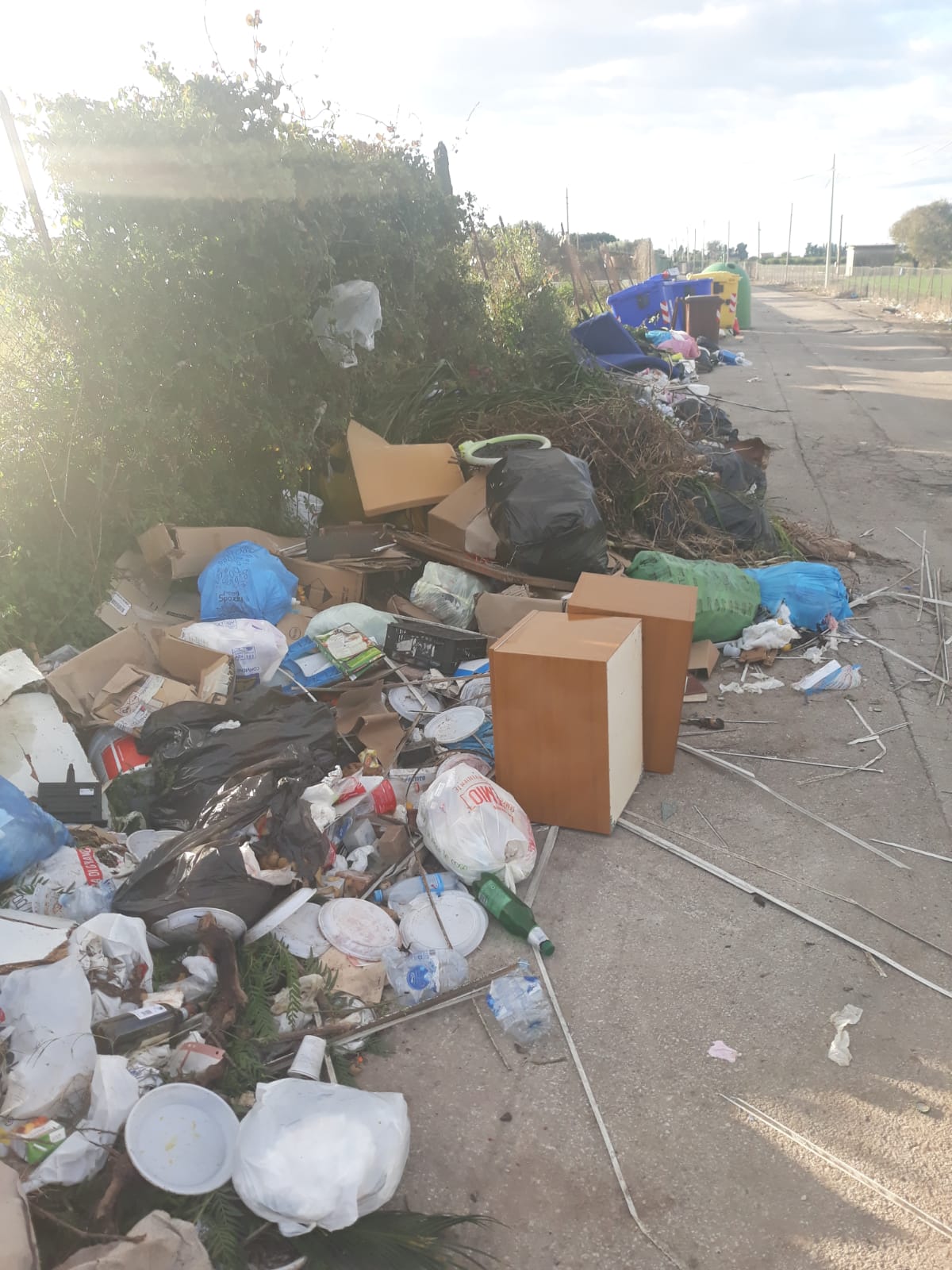 Via Verne e traversa Impellizzeri invase dai rifiuti. Montagne di sacchetti dell’immondizia, di quelli che un tempo si chiamavano genericamente rifiuti solidi urbani e che, con queste modalità di raccolta, non dovrebbero nemmeno più esistere. La segnalazione parla chiaro. Mostra decine di metri di strada in cui enormi sacchi , scatoloni, sfalci e qualsiasi altro genere di rifiuti fa bella mostra di sé, in barba a qualsiasi regola e a qualsiasi volontà di mantenere un decoro urbano quantomeno decente. Anche nei pressi delle “isole ecologiche” lo scenario non cambia. Intorno ai cassonetti destinati alle singole tipologie di rifiuti, torna la spazzatura, disseminata ovunque, probabilmente anche per via dei randagi che, trovando sacchetti sull’asfalto, e non dove dovrebbero stare, vanno poi alla ricerca di cibo. Il vento può avere fatto il resto. Intanto è stato riaperto il centro comunale di raccolta di Arenaura, ma non ancora quello di contrada Targia, in attesa, secondo indiscrezioni, della necessaria documentazione per essere riattivato.