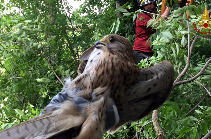 Siracusa. I Vigili del Fuoco in soccorso di un…falco: era rimasto impigliato