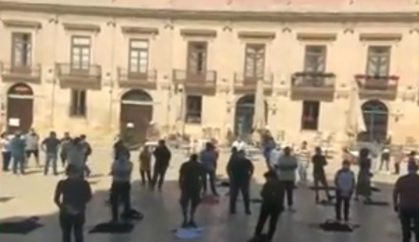 Siracusa. Il flashmob dei ristoratori: vestiti a lutto, mise en place sulla pietra di piazza Duomo