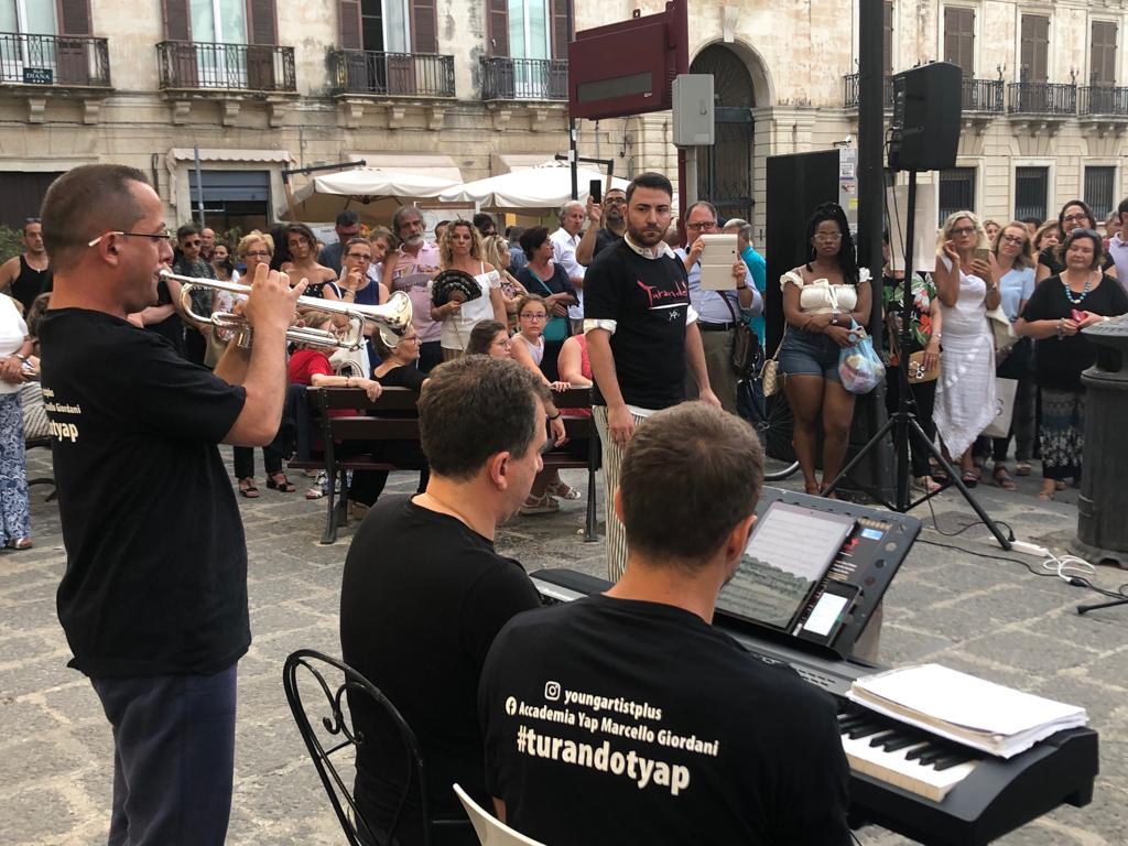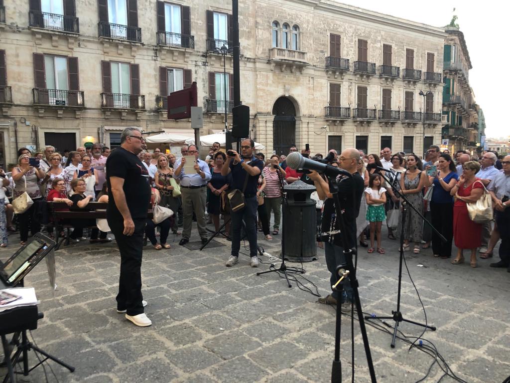 Divertente ed azzeccato flashmob in piazza Archimede. Nel pomeriggio di una calda domenica di luglio, improvvisamente la lirica. Il tenore Giuseppe Di Stefano ha intonato la celeberrima serenata diurna Mattinata con l’accompagnamento al piano del Maestro Ivan Manzella, seduto come un normale turista su di una panchina della piazza.