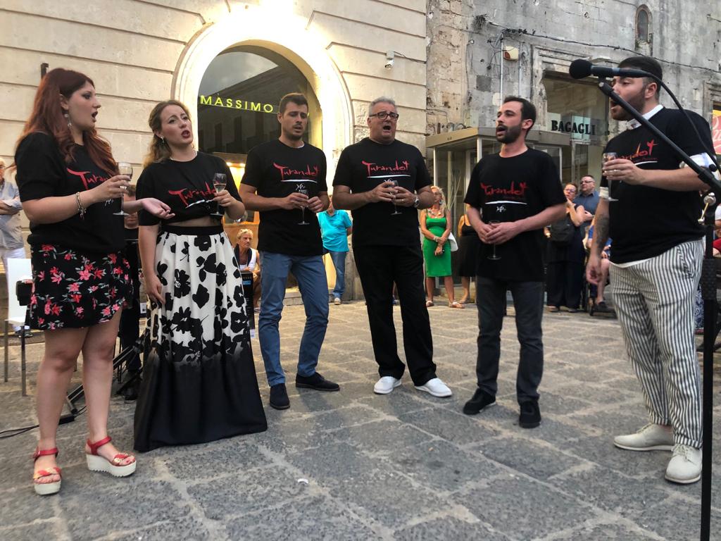 Un invito ad indossare non “la veste bianca”, come vorrebbe Leoncavallo, ma una t-shirt nera con la scritta Turandot. Quasi per magia, come per incanto altre persone hanno fatto lo stesso movimento. Tutti i protagonisti del flashmob hanno indossato simbolicamente la musica, invitando tutti a partecipare come pubblico alla prima di Turandot che si terrà il 3 Agosto al Teatro Greco di Siracusa.