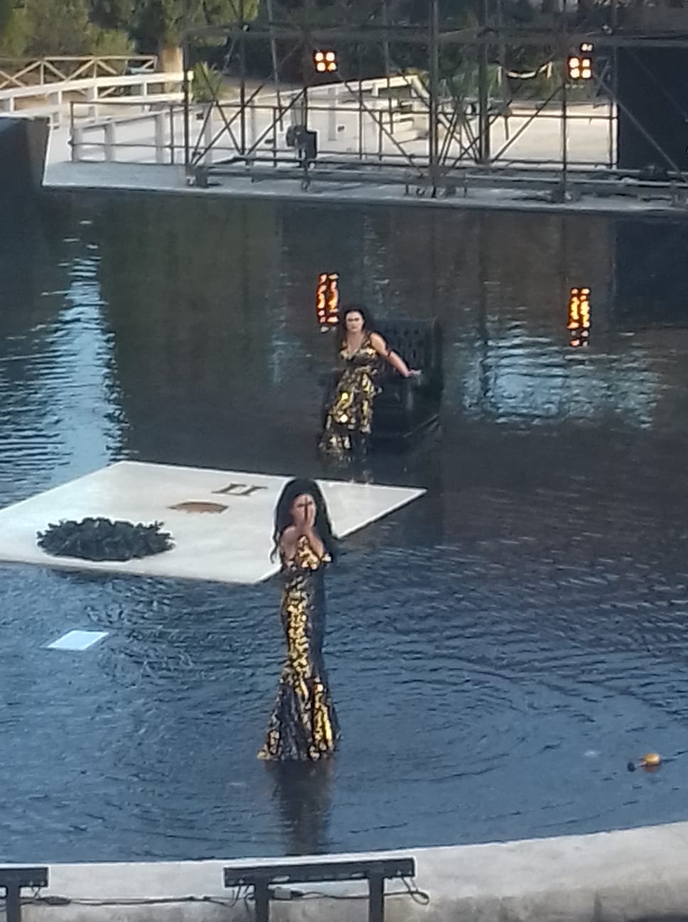 Accompagnate da musiche ed effetti, battute divertenti e danze. Un purista avrà forse da ridire, ma questa Elena è davvero tanta roba. Ci sono anche baci appassionati per la prima volta al teatro greco, tra Elena e Menelao. E poi nacchere che suonano in una studiata colonna sonora capace di cambiare sempre forma, seguendo i momenti in scena ed innovare nell’uso dell’acqua come strumento musicale.