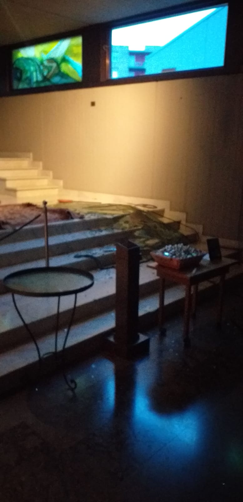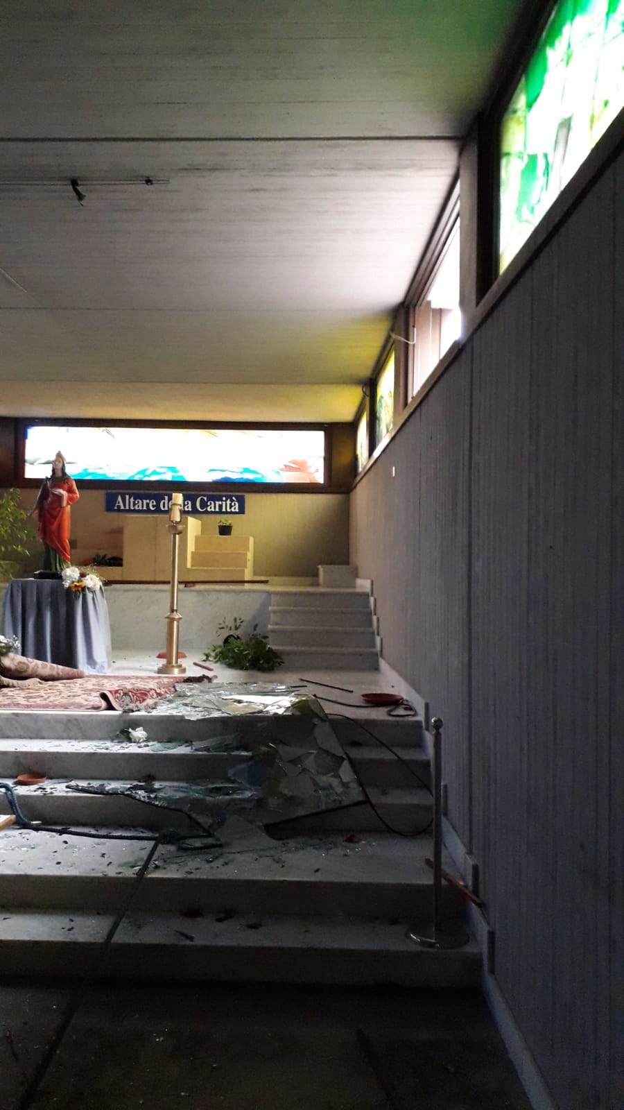 Ieri l’accesso è stato inibito ai pellegrini per motivi di sicurezza. Oggi la basilica è stata riaperta, dopo che la vetrata è stata ripristinata con vetri opachi.