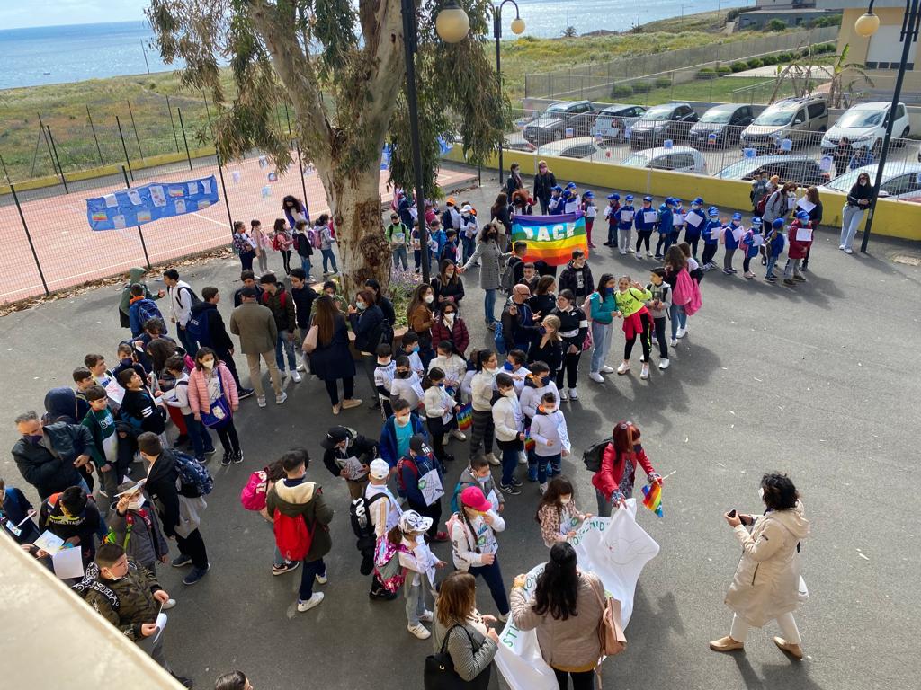 Studenti ed insegnanti del comprensivo Chindemi di Siracusa hanno dato vita, questa mattina, ad una gioiosa marcia per la pace e contro la guerra. Dal cortile della scuola, in via Basilica, hanno raggiunto il piazzale della chiesa di San Corrado Confalonieri, alla Mazzarona, attraverso la pista ciclabile Maiorca.