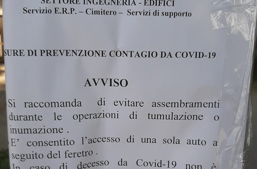 Nuove disposizioni al cimitero di Siracusa. Secondo quanto stabilito dal Comune, in caso di morte per Covid-19, nessun familiare del deceduto potrà assistere alle operazioni di inumazione o tumulazione. Negli altri casi, invece, per evitare assembramenti, consentito l’accesso di una sola auto al seguito del feretro. Una scelta che l’associazione Gli Angeli reputa assurda. “Le famiglie- commenta Giacinto Avola- già private nelle strutture sanitarie della possibilità di assistere e confortare i propri cari, devono almeno poterli accompagnare nella loro ultima dimora. Nessun protocollo è vitato nell’avviso affisso ai cancelli del cimitero e non leggiamo nemmeno la firma del sindaco”. L’associazione suggerisce, piuttosto, di non “creare effetto imbuto ai cancelli e di dotare i bagni di colonnine con disinfettante, oltre che posizionarle ai cancelli, se davvero si intende prestare attenzione alle misure anti-covid”.