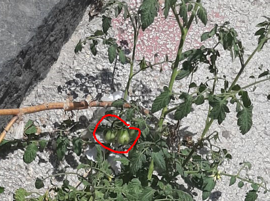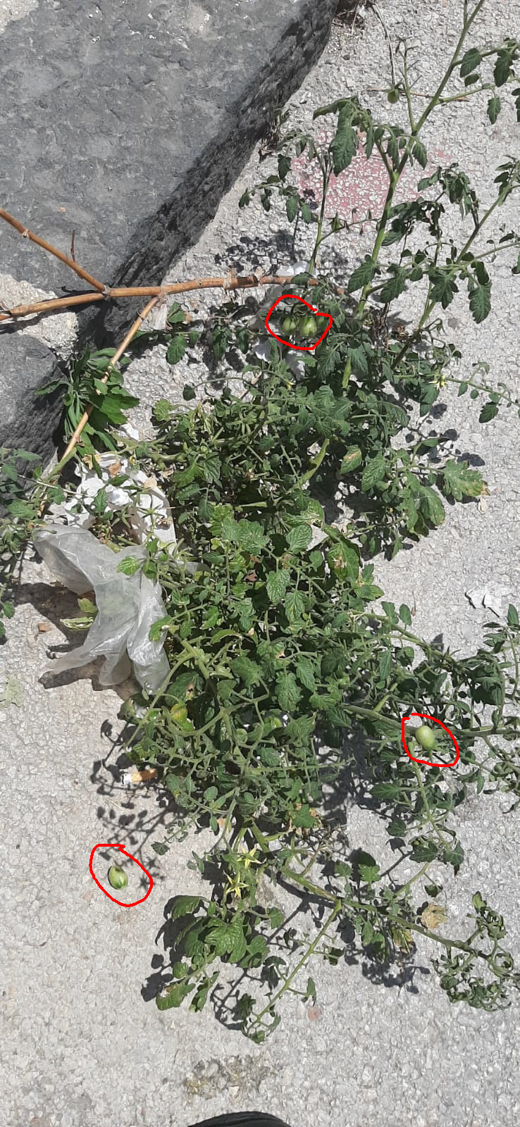 Piante di pomodoro in piena produzione lungo la corsia ciclabile di viale Santa Panagia.