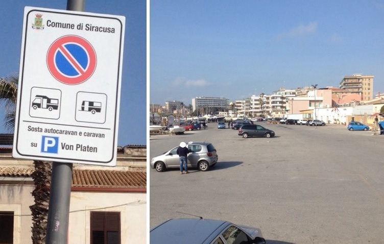 Nuove regole per parcheggiare allo Sbarcadero Santa Lucia. Spunta il divieto di sosta per camper e roulotte che vengono invitati, dai cartelli piazzati in zona, ad utilizzare il posteggio Von Platen. A disporre la “stretta” è l’ultima ordinanza del settore Mobilità e Trasporti del Comune di Siracusa.