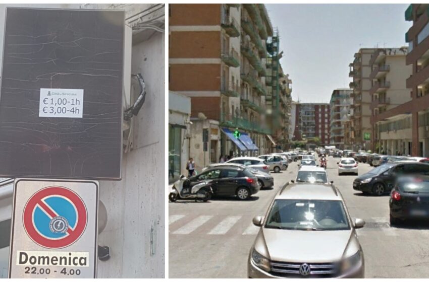 Siracusa. Segnaletica stradale “a senso”: sul pannello annerito, l’indicazione del costo