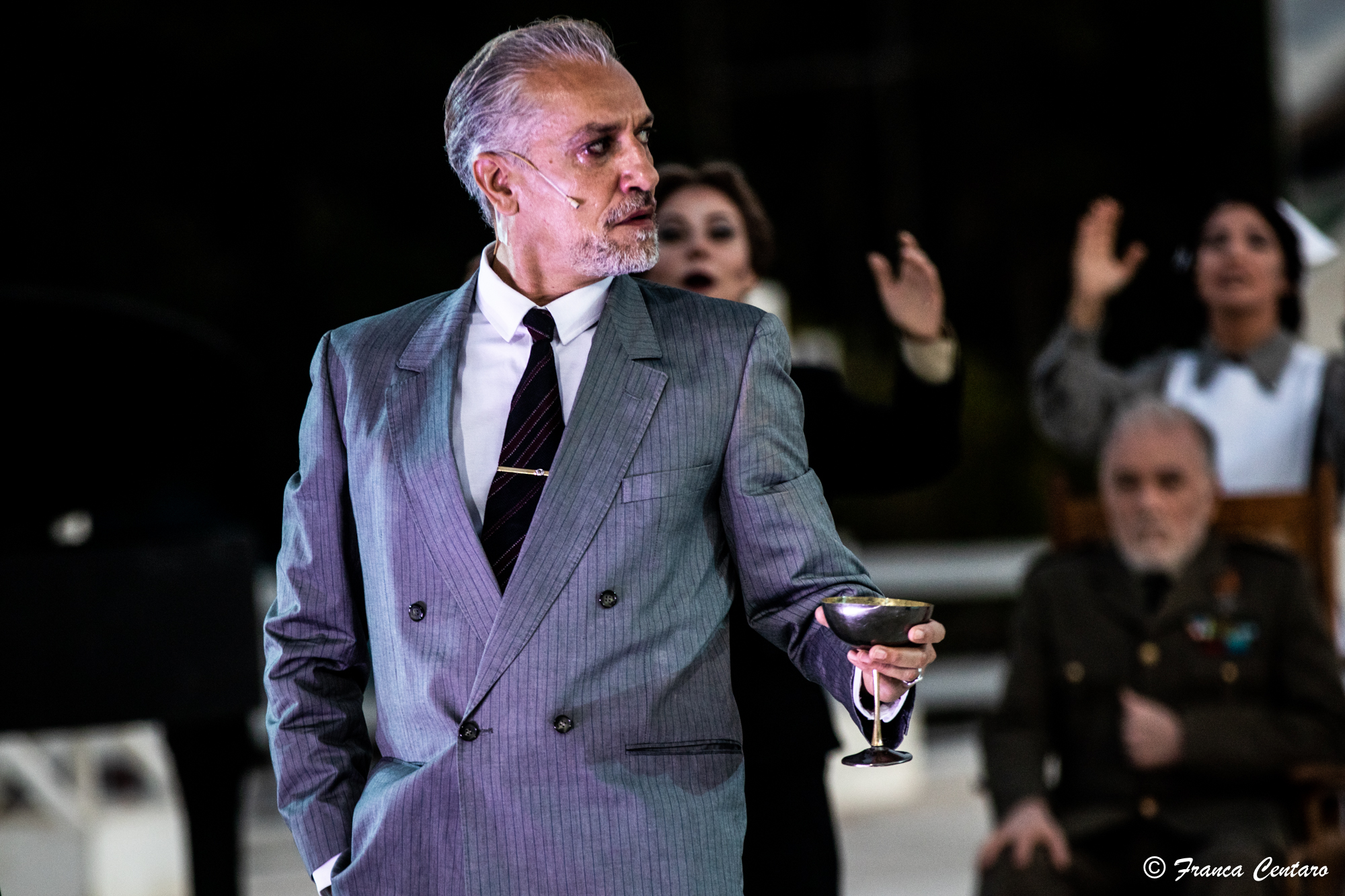 “Avere la straordinaria occasione di dirigere l’Agamennone di Eschilo – sono le parole di Livermore – significa accogliere la sfida di partire dall’archetipo per porre le premesse che, in maniera “irrefrenabile”, verranno sviluppate negli altri due drammi della trilogia. In quanto archetipo, l’Agamennone eschileo corrisponde alla definizione stessa di “classico”: qualcosa che è esemplare sin dal momento della sua creazione, ma sempre vibrante ed estremamente attuale, motivo per cui va restituito in tutta la sua possanza e forza con un lavoro di altissima filologia”. La traduzione dello spettacolo è di Walter Lapini; Agamennone di Eschilo è una coproduzione con il Teatro Nazionale di Genova. Nel cast (in ordine di apparizione): Diego Mingolla e Stefania Visalli (Musici), Maria Grazia Solano (Sentinella), Gaia Aprea (Corifea), Maria Laila Fernandez, Alice Giroldini, Marcello Gravina, Turi Moricca, Valentina Virando (Coro), Laura Marinoni (Clitennestra), Olivia Manescalchi (Messaggero), Sax Nicosia (Agamennone), Linda Gennari (Cassandra), Stefano Santospago (Egisto), e con Carlotta Maria Messina e Mariachiara Signorello (spettro di Ifigenia), Tonino Bellomo, Edoardo Lombardo e Massimo Marchese (Vecchi argivi), Margherita Vatti (Elettra bambina), Giuseppe Fusciello (Oreste bambino). Le scene sono di Livermore e Lorenzo Russo Rainaldi, i costumi di Gianluca Falaschi, le musiche originali di Mario Conte, il disegno luci di Antonio Castro, video design D-Wok, regista assistente è Giancarlo Judica Cordiglia, costumista assistente Anna Missaglia, assistente alla regia Aurora Trovatello, direttore di scena Alberto Giolitti. Si ringrazia Avio Club di Siracusa per la collaborazione.