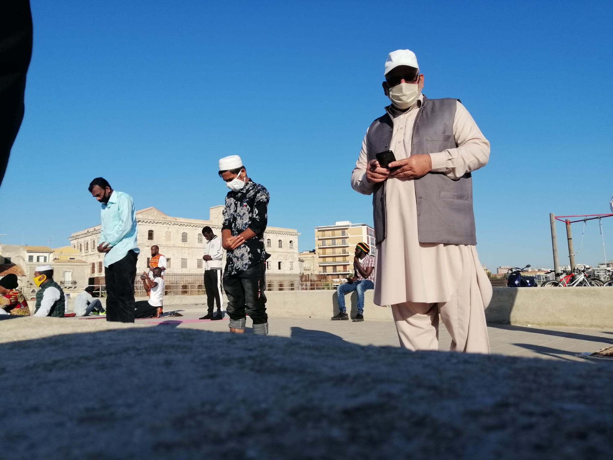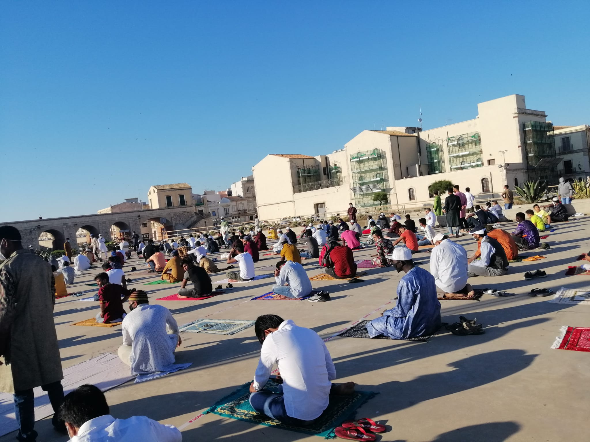Siracusa. Tappeti e mascherine sul Talete, i musulmani celebrano la fine del Ramadan