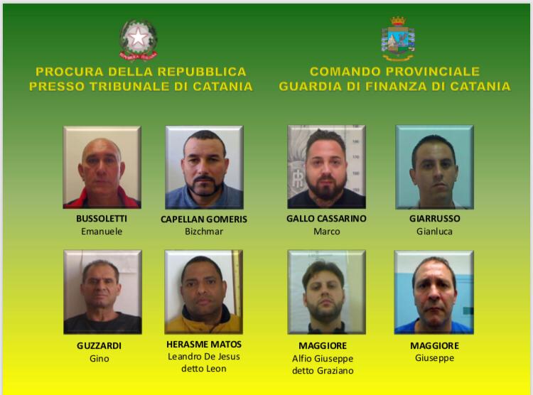 Su delega di questa Procura della Repubblica, i Finanzieri del Comando Provinciale della Guardia di Finanza di Catania hanno dato esecuzione a un’ordinanza di misure cautelari in carcere emessa dal Gip del Tribunale etneo nei confronti di 16 persone indagate, a vario titolo, per associazione finalizzata al traffico illecito di sostanze stupefacenti e, nello specifico, al commercio di hashish, marijuana, cocaina ed eroina.L’investigazione condotta dal Nucleo di Polizia Economico- Finanziaria di Catania e coordinata da questa Procura Distrettuale, convenzionalmente nota come operazione “Stop and Go”, ha consentito già di pervenire, tra gennaio 2016 e maggio 2017, all’arresto in flagranza di reato di 27 soggetti per traffico di stupefacenti (artt. 73 e 80, D.P.R. 309/90) e al contestuale sequestro complessivo di circa 100 chilogrammi di hashish, 70 di marijuana, 10 di cocaina e 4 di eroina. Gli stupefacenti sequestrati, destinati al mercato della Sicilia orientale, avrebbero fruttato alle strutturate compagini criminali oltre 5 milioni di euro.Nel dettaglio, l’indagine dei finanzieri del G.I.C.O. di Catania ha permesso di disarticolare due distinte compagini associative, aventi la loro base operativa a Catania con ramificazioni attive in Italia (Torino, Siena e Reggio Calabria) e all’estero (Spagna e Sud America).Un primo sodalizio era composto dai fratelli Maggiore, Alfio Giuseppe (cl.1988), Giuseppe (cl.1965), Orazio Valentino (cl.1987), quali promotori, catanesi originari e attivi nel quartiere Librino, nonché da Vincenzo Oneto (cl.1961, origini palermitane) e dal catanese Daniele Stivala(cl.1987), i quali si occupavano di procurarsi rilevanti quantitativi di hashish ed eroina a Torino per poi trasportarla a Catania rivendendola all’ingrosso ai fornitori di piazze di spaccio nei quartieri di Librino, San Cristoforo e Villaggio Sant’Agata.Alla stessa compagine appartiene Giuseppe Vasta (cl.1988), già noto alle cronache giudiziarie per essere stato tratto in arresto, nel quartiere Zia Lisa, con 1,3 kg di cocaina celata tra salumi nonché per la detenzione illegale di un’arma clandestina e munizioni; Vasta era il principale collettore degli illeciti traffici orchestrati dal gruppo capeggiato dai fratelli Maggiore.Ulteriori acquirenti dell’associazione criminale dei Maggiore, nonché destinatari del provvedimento restrittivo eseguito, sono: Gianluca Giarrusso (cl.1982), tratto in arresto nel marzo 2017, destinatario di un carico di 27 kg di hashish; lo stupefacente era occultato in una cassa di legno per vini all’interno della quale vi erano 53 pacchetti, protetti ciascuno da un palloncino colorato e doppiamente avvolti con plastiche sottovuoto; Omar Sacco (cl.1984) e Marco Gallo Cassarino (cl.1985), organizzatori di due compravendite di stupefacenti, una di cocaina proveniente dalla Calabria e destinata alle citate piazze di spaccio catanesi e una di hashish da Torino al mercato della Sicilia orientale; Salvatore Stivala (cl. 1980), tra i promotori di una compravendita di hashish