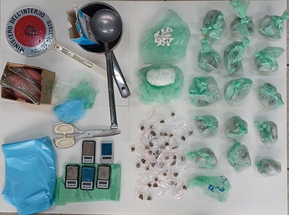 In particolare, a seguito di perquisizione domiciliare, uno dei due è stato trovato in possesso di 413 dosi di hashish e di 18 grammi di cocaina, mentre l’altro aveva nella sua disponibilità 55 grammi di cocaina.