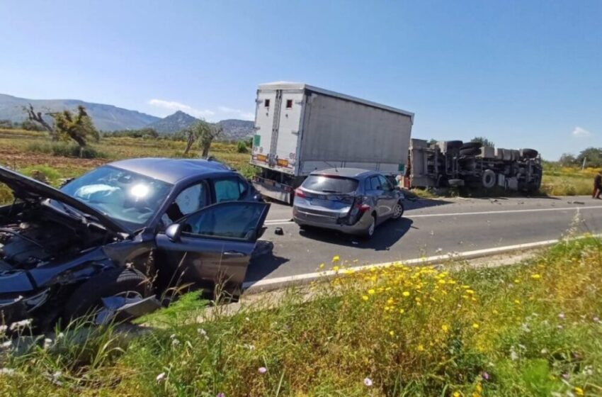 Nel tentativo di evitare ulteriori conseguenze, il conducente dell’autotreno ha deviato verso sinistra, ma il mezzo si è ribaltato sul fianco, spargendo il carico nella campagna adiacente.