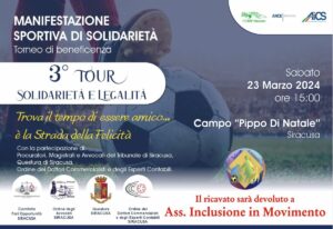 Il Tour della Legalità è un’iniziativa promossa dalla Asd Inclusione in Movimento Siracusa Aps, in collaborazione con la Questura di Siracusa, al fine di realizzare un sogno dei ragazzi, raccogliendo fondi: dal 17 maggio al 19 maggio saranno ospiti della società di calcio Monza, per svolgere uno stage Sportivo culturale.
