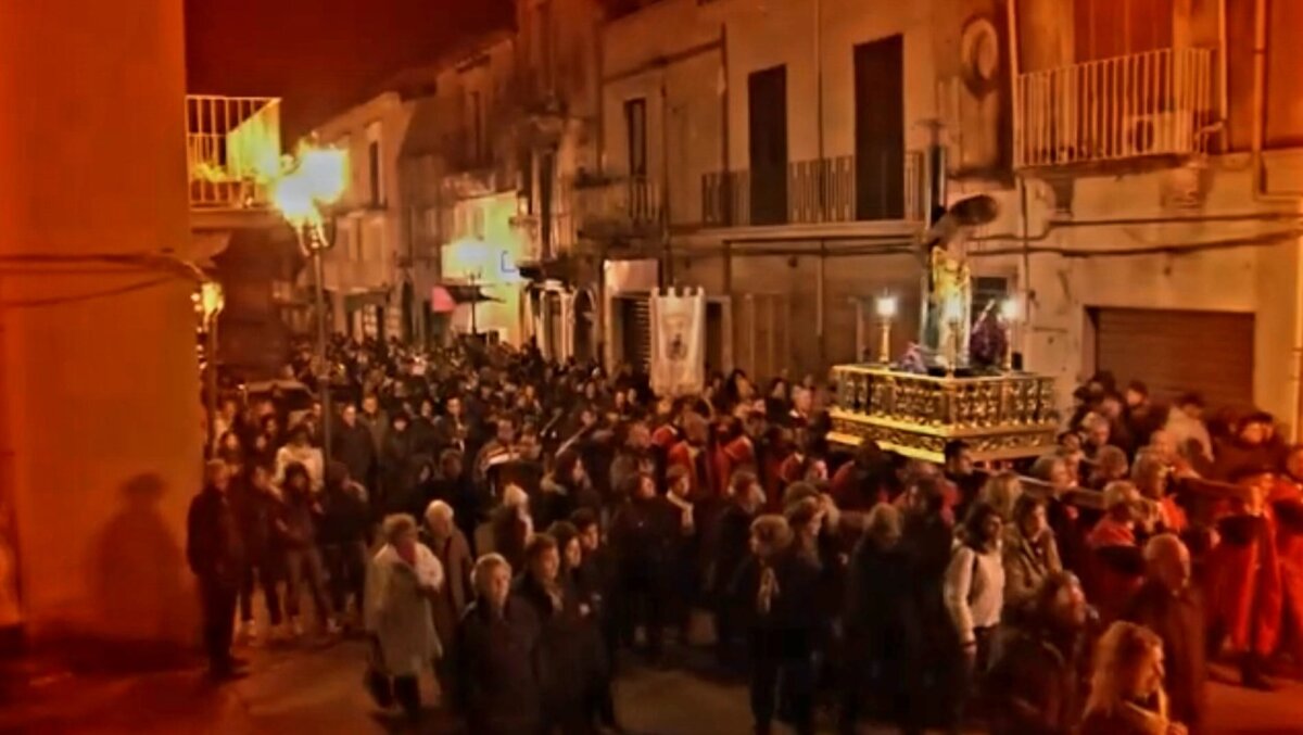 A Lentini ‘A Scisa a Cruci: il Cristo viene deposto dalla Croce e portato in processione seguito dalla Madonna Addolorata. Nei pressi della chiesa di San Francesco all’Immacolata le figlie di Maria rivolgono canti a Gesù e alla Madonna che arrivano al cuore di tutti i presenti.