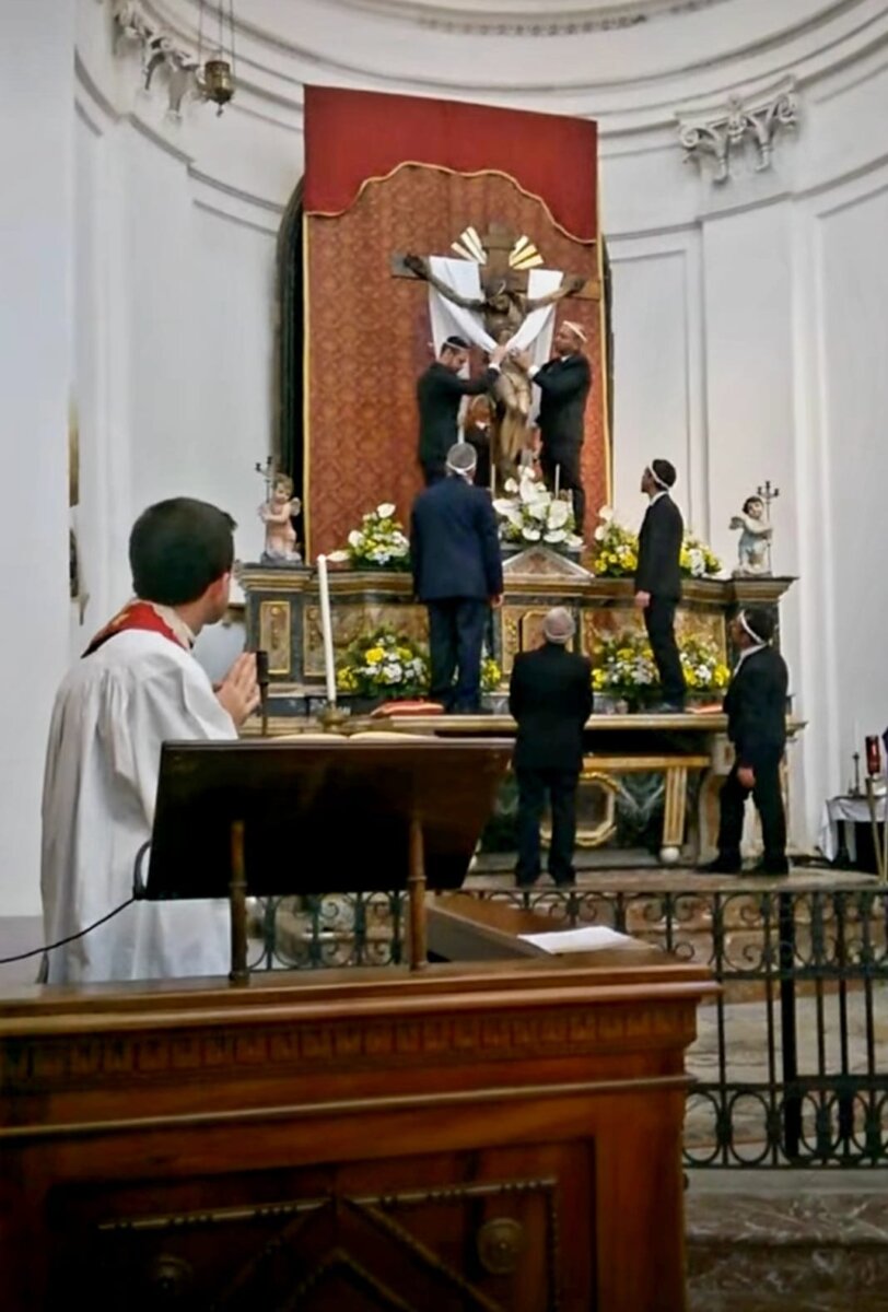 Prima della processione, nella chiesa di San Filippo (Giudecca) ‘A scisa ra Cruci.