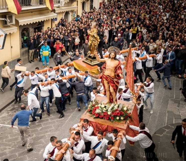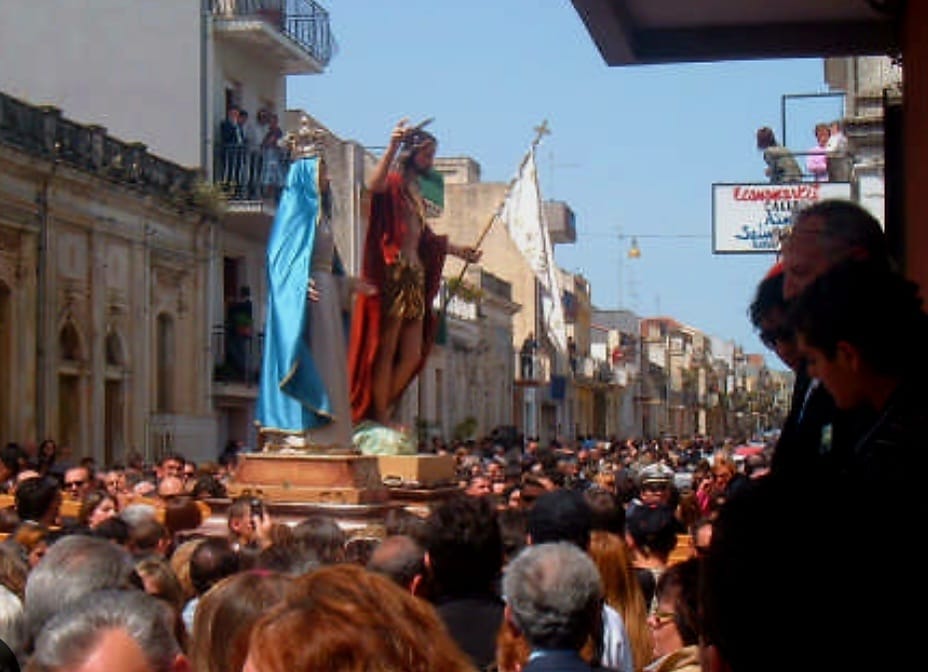 A Canicattini, nella tarda mattinata di domenica, “a Paci Paci”, l’esaltante incontro tra i simulacri del Cristo Risorto e della Madonna che abbandonerà il mantello nero del lutto, per riabbracciare il Figlio.