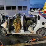 Secondo una prima ricostruzione, l’auto sarebbe stata impegnata in una manovra di sorpasso forse non troppo prudente. Inevitabile a quel punto l’impatto con il mezzo pesante, che sopraggiungeva in direzione opposta. La vettura sarebbe finita schiacciata sotto il camion.