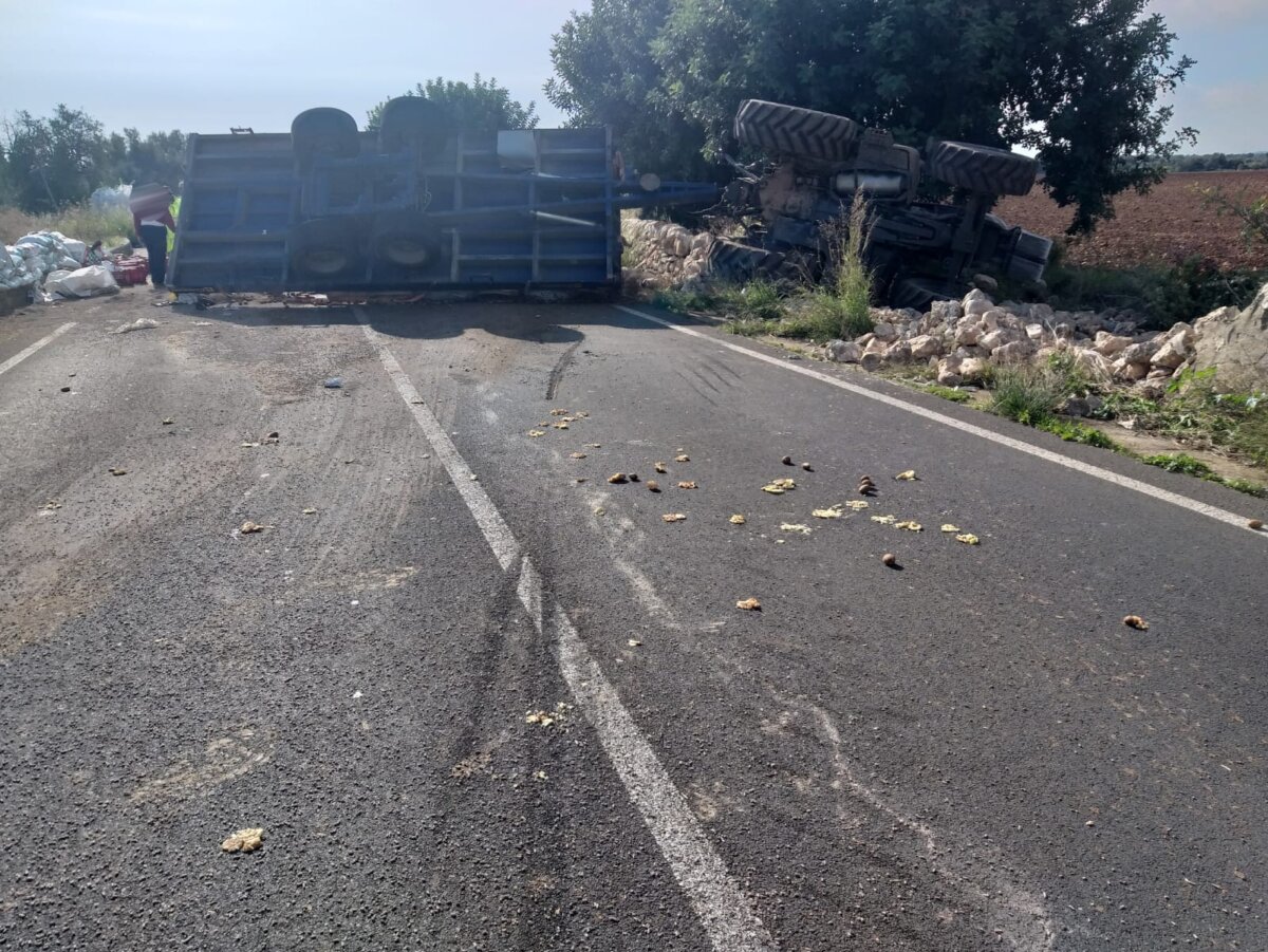 Trattore si ribalta sulla Statale 115 e perde il carico, strada chiusa al traffico