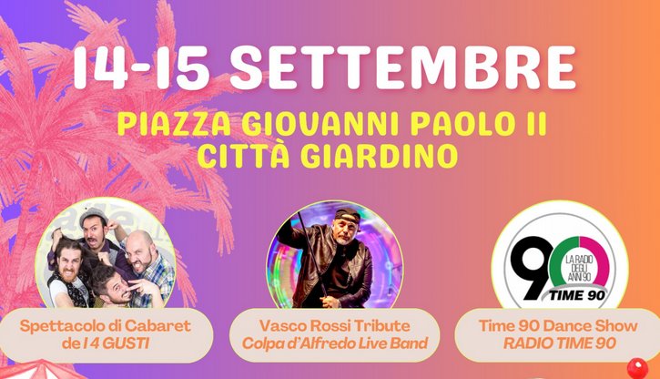 Sabato 14 e domenica 15 settembre, sarà la frazione di Città Giardino a ospitare una due giorni di divertimento, nella sua location naturale di Piazza Papa Giovanni Paolo II. Un programma intenso, pensato per offrire intrattenimento a grandi e piccoli, appassionati di musica, motori e buon cibo.