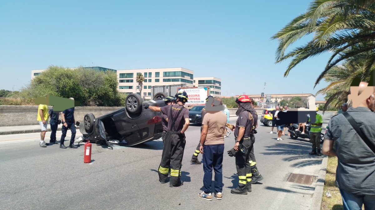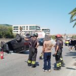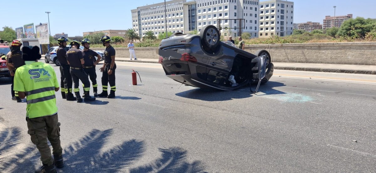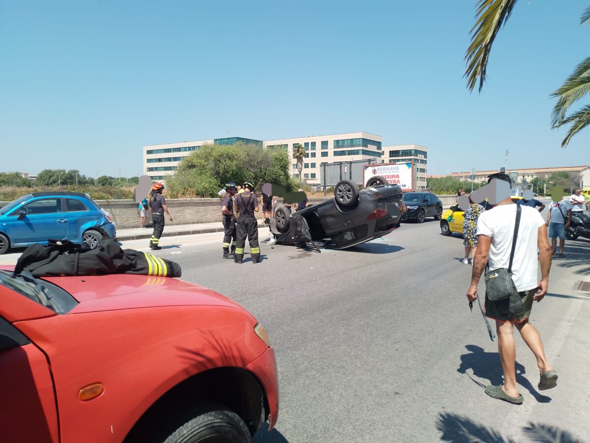 Urta auto in sosta e si ribalta, incidente in viale Santa Panagia