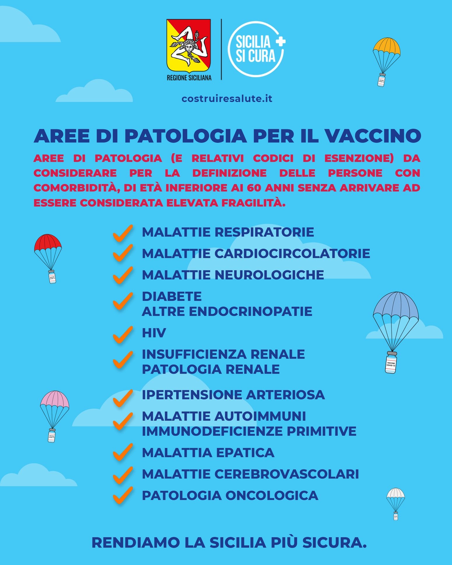 Ancora novità per la campagna vaccinale in Sicilia: da oggi, in tutti i centri della provincia di Siracusa, via libera alle inoculazioni (con Pfizer o Moderna) per la fascia di età 50-59 con patologie certificate. Basta presentarsi nei punti di vaccinazione, con documento di identità, tessera sanitaria e certificato del medico di base o dello specialista che comprova la o le patologie pregresse.