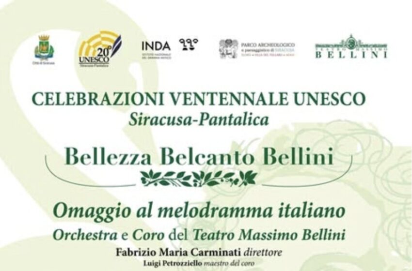 Nell’ambito degli eventi promossi dal Comune per il ventennale dell’iscrizione nella World Haritage List dell’Unesco del sito “Siracusa e le necropoli rupestri di Pantalica”, venerdì prossimo (18 luglio), alle ore 20,30, l’Orchestra e il Coro del Teatro Massimo Bellini di Catania si esibiranno, nello scenario unico del Teatro Greco, con un concerto sinfonico-corale concepito come omaggio alla tradizione lirica nazionale, anch’essa patrimonio Unesco. L’ingresso è gratuito.